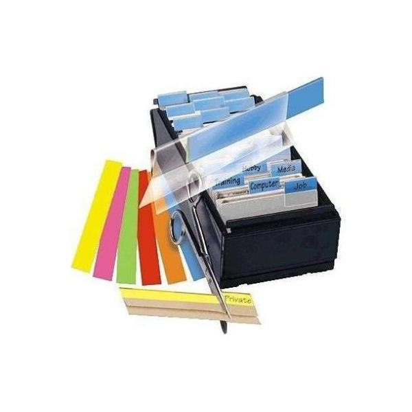 Divisori e separatori per archivio: cavalierini adesivi con etichetta intercambiabile, tagliabili per ottenere la lunghezza desiderata, confezione da 10 strisce 10x150mm in colori assortiti.