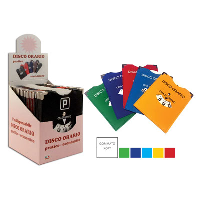 Il Disco orario in similpelle cucito è un prodotto di alta qualità con angoli in finitura nichel e colori assortiti, disponibile in confezioni da 25 pezzi, misura 12,7x10cm.