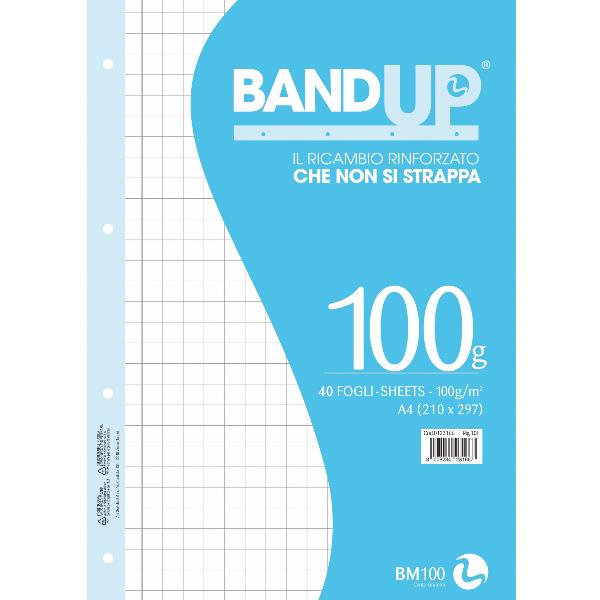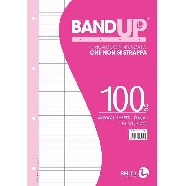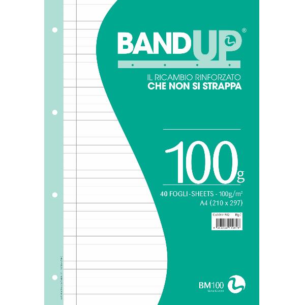 Acquista Ricambi forati di alta qualità come il prodotto BAND UP 100g A4 R.C, ideale per le tue esigenze, con formato A4, rigatura C e grammatura di 100 gr, composto da 40 fogli.