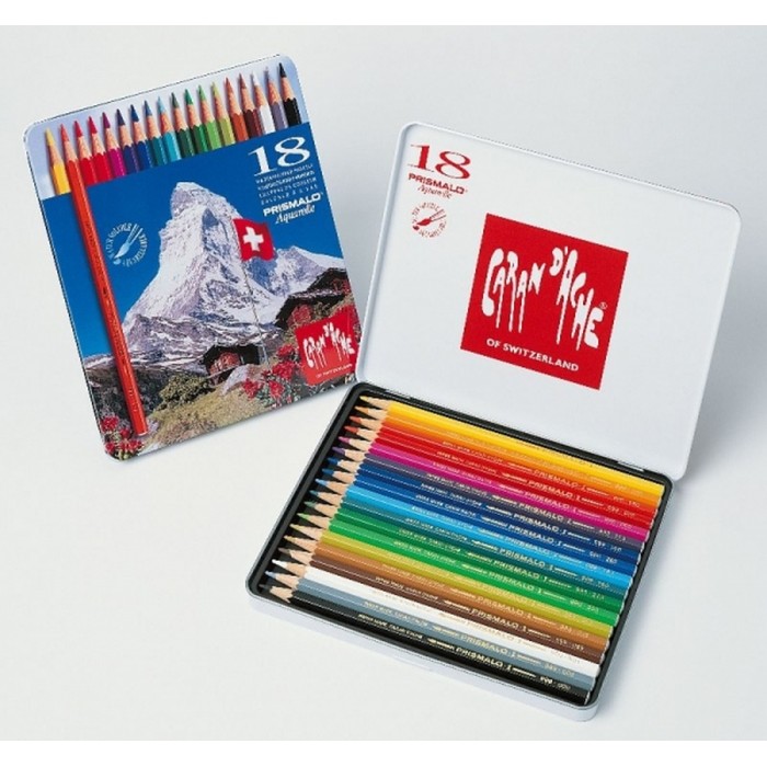 Matite colorate caran d`ache prismalo in scatola metallo da 18 colori 7610186013188