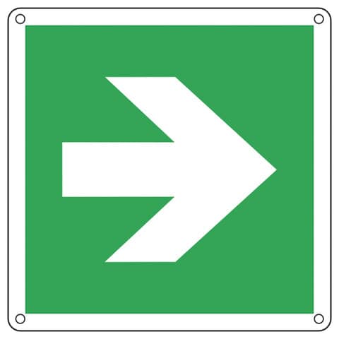 Il cartello d”emergenza ””Freccia a destra/sinistra”” è uno strumento di visual e comunicazione standardizzato secondo EN ISO 7010, realizzato in alluminio con sfondo verde e simbolo di freccia. Misura 25×25 cm e serve per indicare direzioni in caso di emergenza.