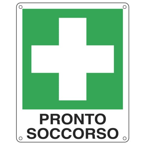 Il cartello d”emergenza “Pronto soccorso” è uno strumento di visual e comunicazione essenziale, realizzato in alluminio con sfondo bianco e scritte verdi secondo lo standard UNI ISO 7010. Le sue dimensioni sono di 12×14,5 cm.