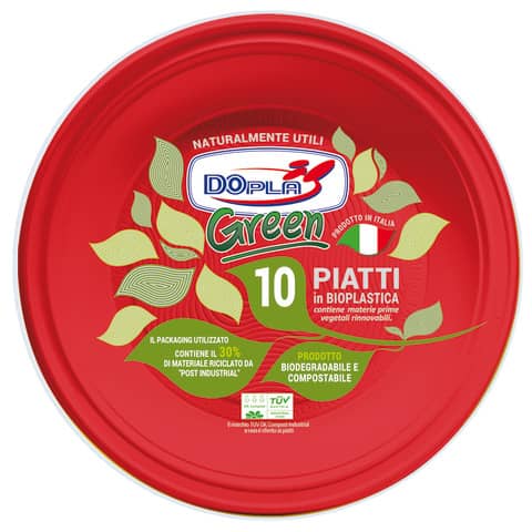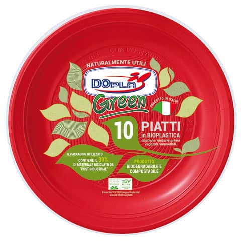 Piatti piani biodegradabili rosso dopla green ø 220 mm 8005090020527
