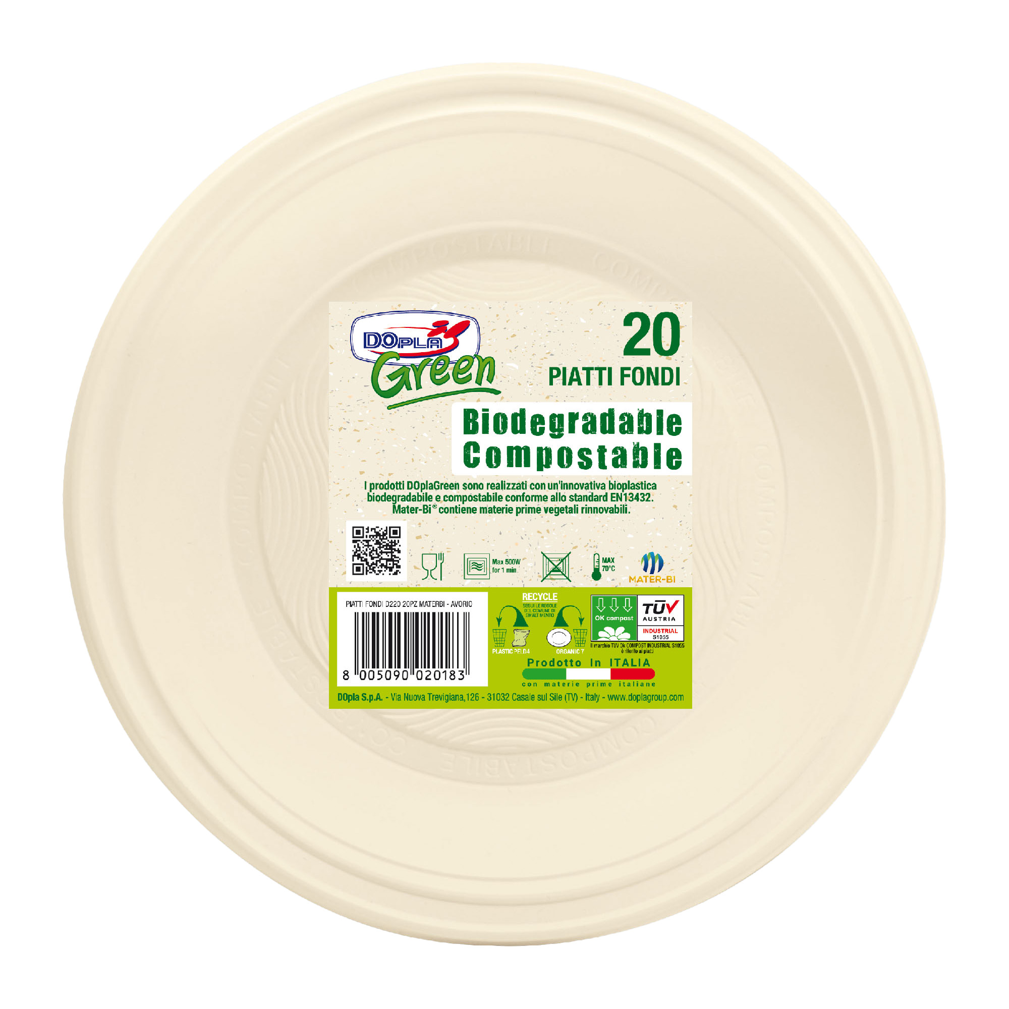 Piatti fondi biodegradabili in mater-bi diam 220mm avorio dopla 8005090020183