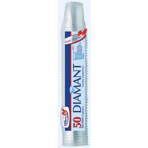 I bicchieri Dopla Diamant sono realizzati in polistirene trasparente, hanno un diametro di 58 mm e un”altezza di 60 mm con una capacità di 100 ml. Sono adatti per il contatto con alimenti fino a 90°C per 15 minuti e sono riutilizzabili, confezionati in un pacco da 50 pezzi, ideali come contenitori multiuso.