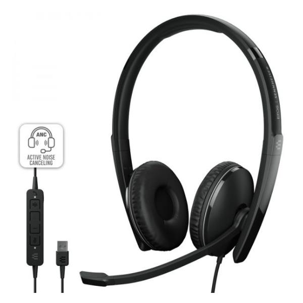 La cuffia microfono SC 30 USB è ideale per Skype e comunicazioni online, offre suono chiaro e microfono a cancellazione del rumore per conversazioni fluide e comfort grazie al design ergonomico.