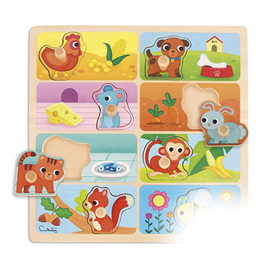 Puzzle di animali della fattoria di forme geometriche manico ergonomico per rendere facile al bebe 39 il gioco e il trasporto del puzzle i pezzi sono legati alla base con cordicelle cos sono sempre vicine quando il beb vuole giocare