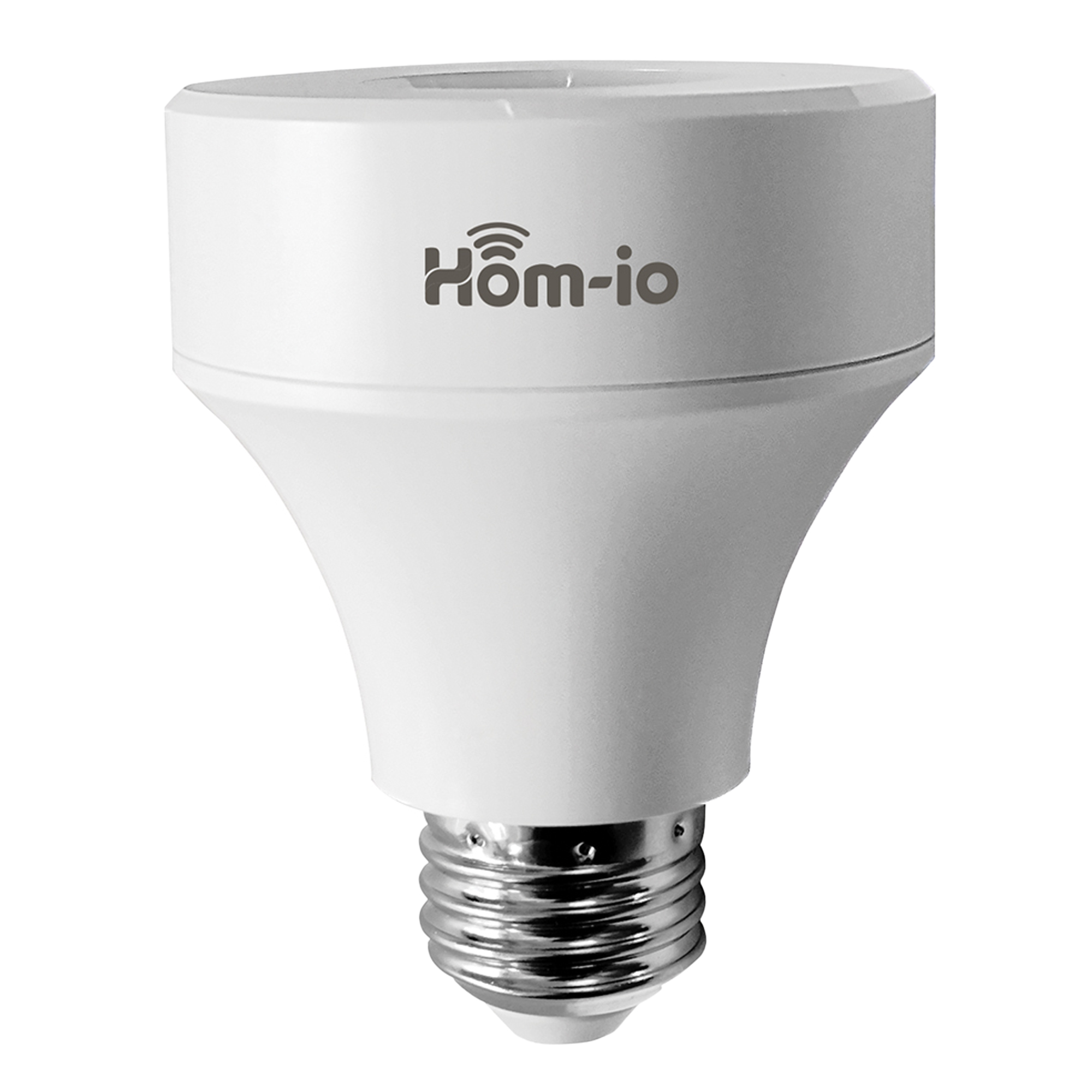 Adattatore E27 Smart WiFi per trasformare lampadine tradizionali in device controllabili via WiFi con l”app Hom-io, compatibile con Alexa e Google Home, con funzione dimmerabile e tensione 100-240 V.