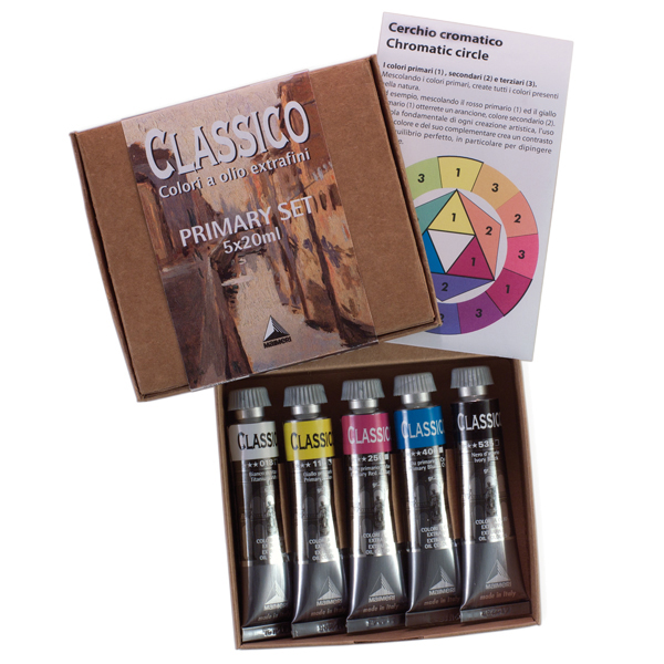 Set di acrilici maimeri da 75 ml in scatola con 5 colori primari. 8032810107169