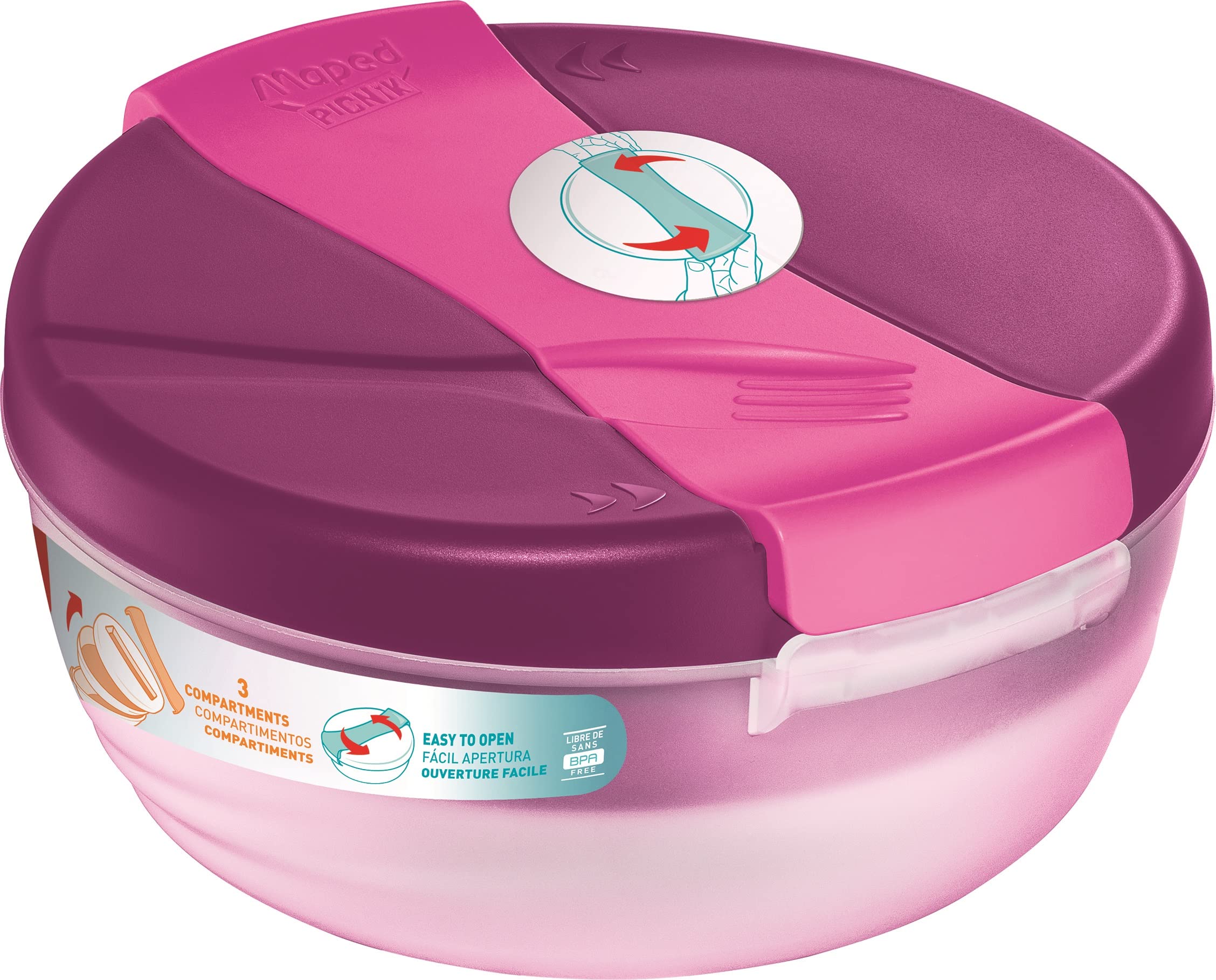 La Lunch box 3 in 1 Picnick Concept – rosa corallo – Maped è una pratica scelta per il catering, composta da tre compartimenti per cibi, facilmente apribili e a prova di perdita, completamente smontabile per un lavaggio facile, adatta all”uso in microonde e freezer.