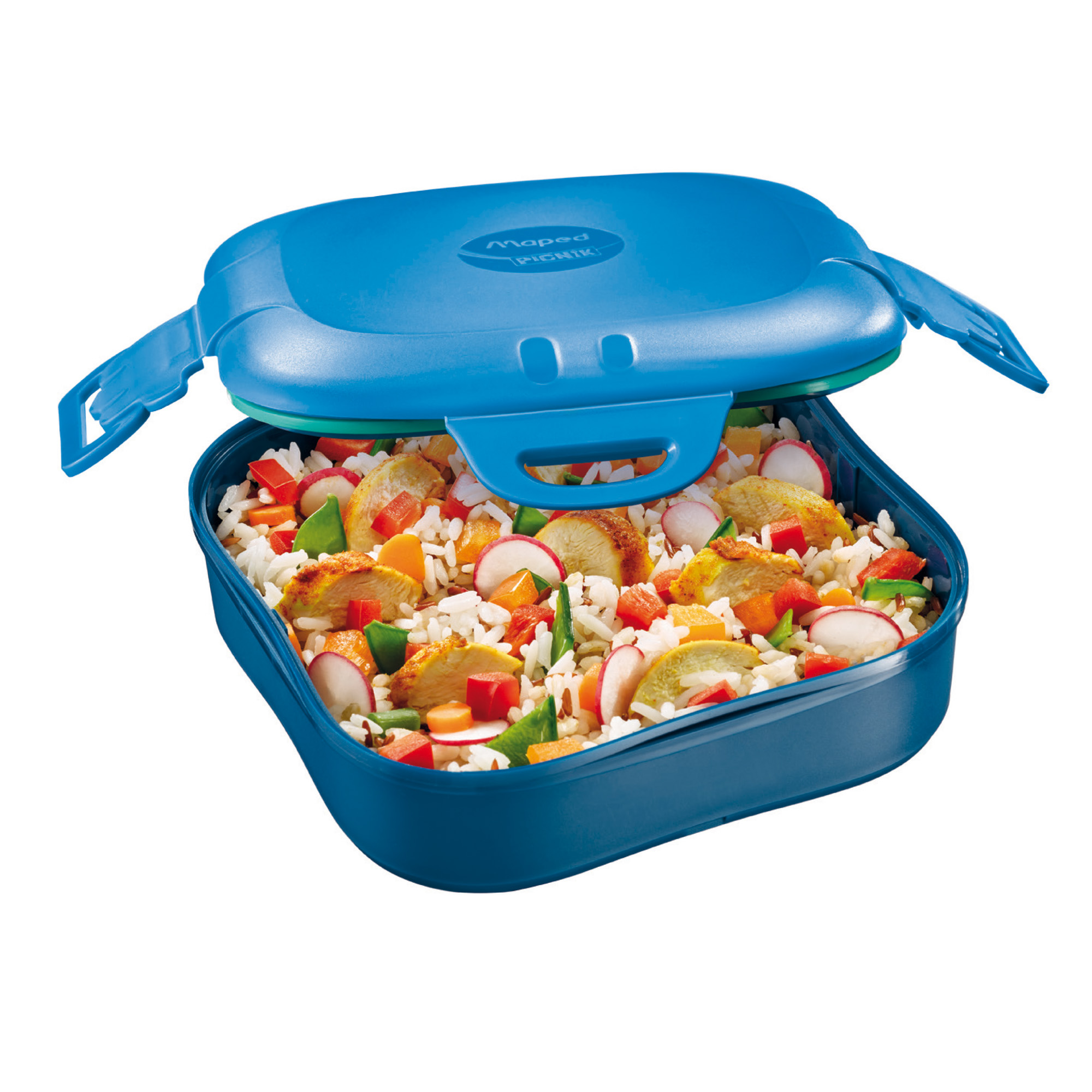 Il Snack box Picnik Concept di Maped è una pratica scelta per il catering, facile da aprire, a prova di perdita e completamente smontabile per un lavaggio efficiente, adatto anche all”uso in microonde e freezer.