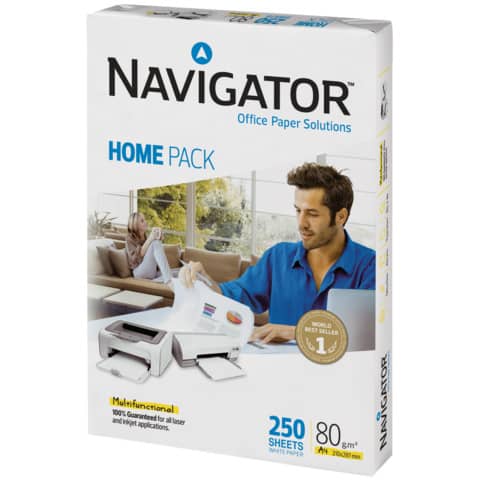 La carta per ufficio Navigator Home Pack è una scelta ideale per il mercato small office/home office, grazie alla sua alta qualità e formato A4 con grammatura di 80 gr/mq, adatta per fotocopiatrici, stampa inkjet e laser a colori.