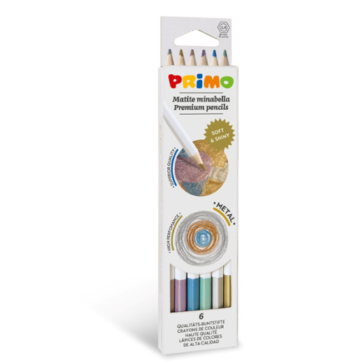 Il prodotto CF6 MINABELLA METAL ESAG DIAM 3 8MM appartiene alla categoria dei Pastelli colorati, si tratta di matite minabella metallizzate esagonali in scatola cartone, disponibili in sei colori diversi.