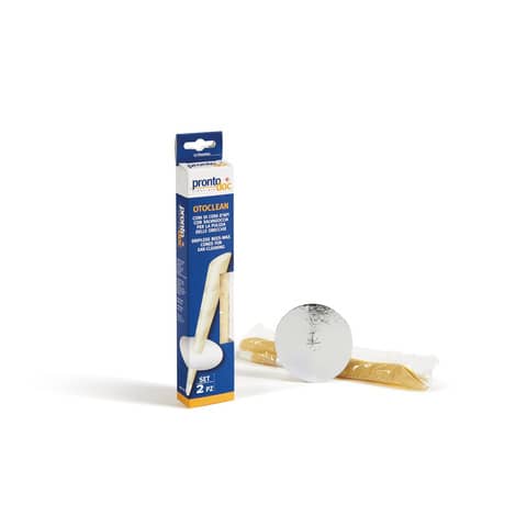 Il prodotto Nettaorecchie ProntoDoc ””Otoclean”” offre coni di cera d”api per la pulizia delicata delle orecchie, composto da cotone, paraffina, cera di palma, cera d”api e propolis, ideale per il primo soccorso.