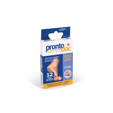 Il prodotto ProntoDoc per verruche è un trattamento efficace per le verruche plantari e comuni, con cerotti che si adattano perfettamente alla zona da trattare, favorendo la rimozione e prevenendo infezioni batteriche, con acido silicilico, in confezione da 12 pezzi di cerotti Ø 12 mm.