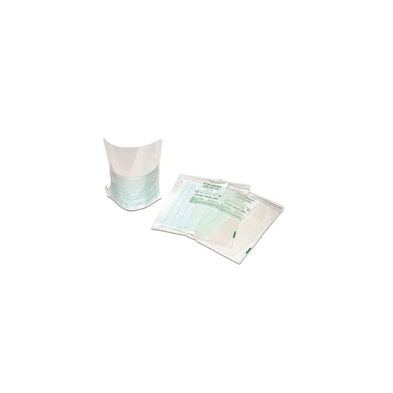 Mascherina chirurgica con visiera paraschizzi elastici 3 strati 01080340280129211726090110211001
