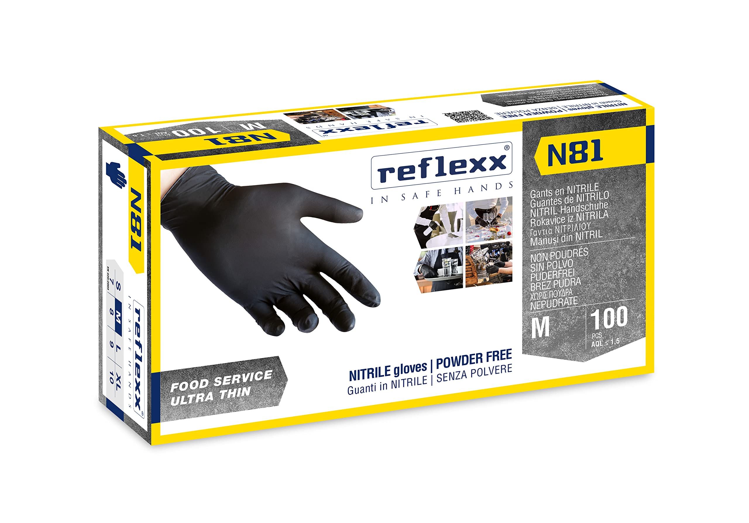 Guanti nitrile reflexx, taglia m, colore nero, 100 pezzi 8032891630082