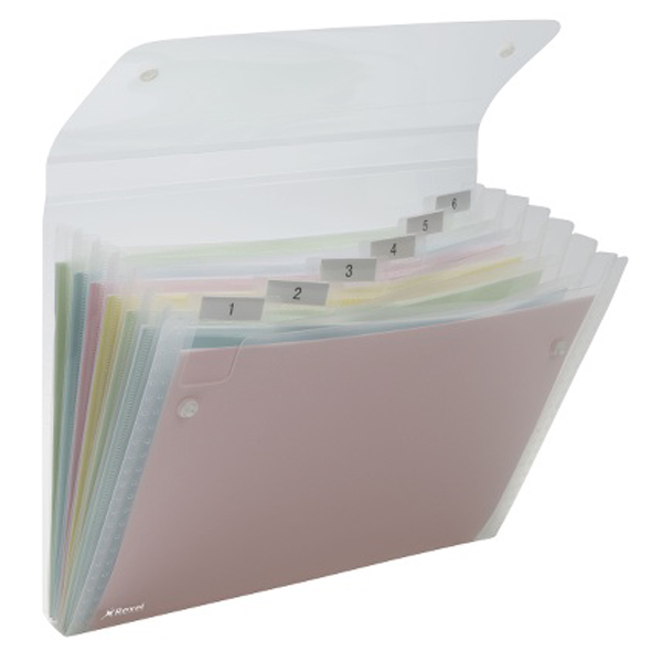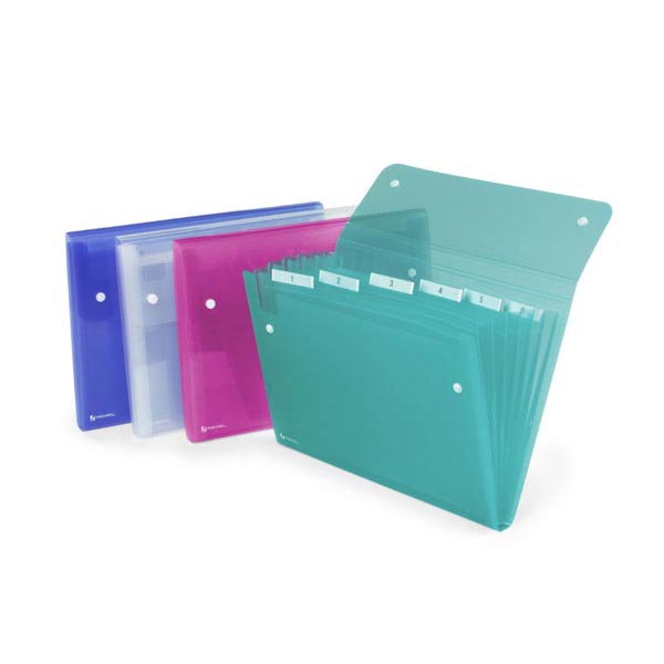 La cartella a soffietto ICE è realizzata in robusto polipropilene traslucido, contiene 6 tasche con cavalierino trasparente ed etichette per personalizzare i documenti, formato utile di 22×30 cm.