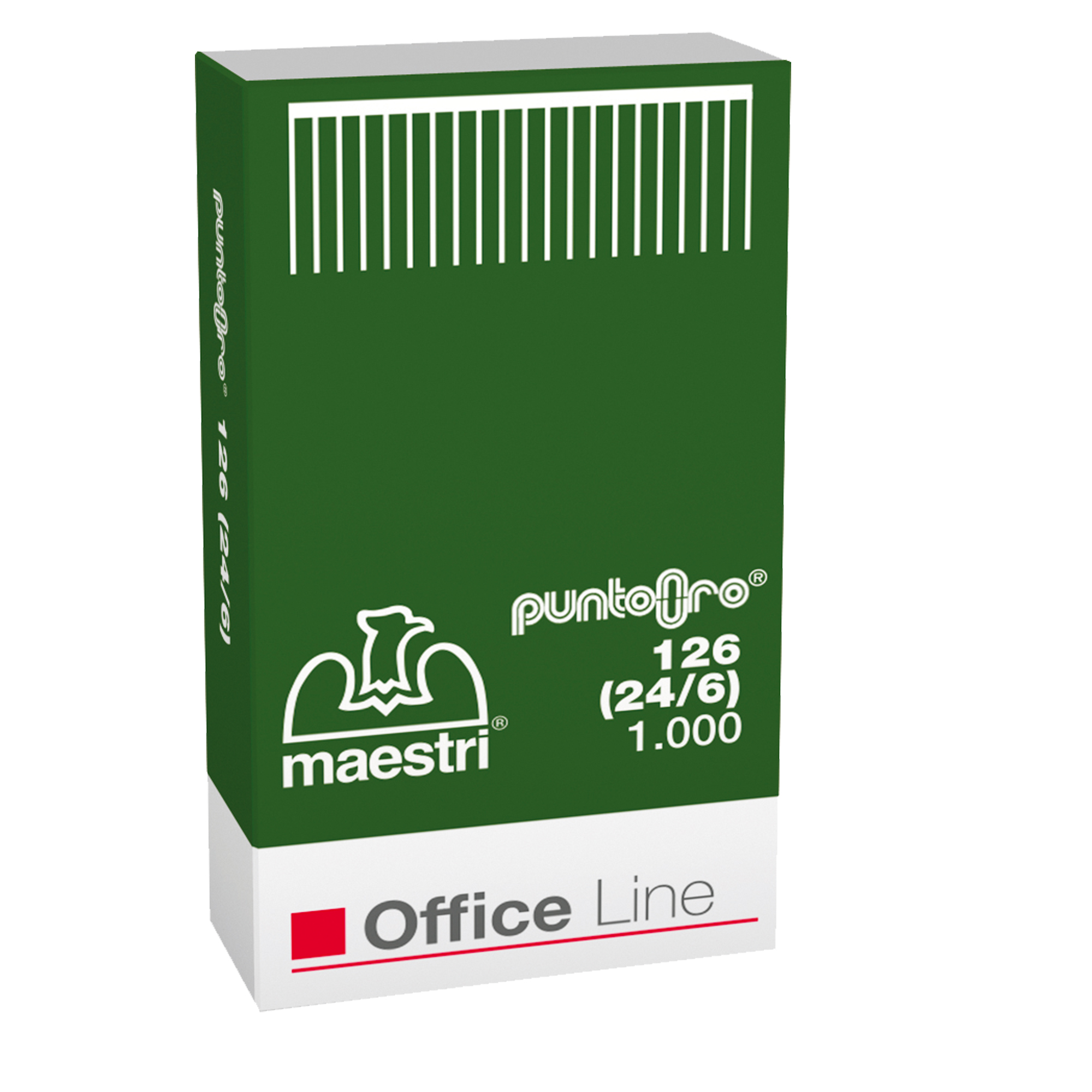 Il prodotto CF10X1000PUNTI24/6 appartiene alla categoria dei punti cucitrici. Si tratta di punti metallici per cucitrici da tavolo e a pinza, noti come Eurostaples 126, caratterizzati da una lunghezza di circa 12 mm con un passo standard. Sono realizzati in acciaio resistente e presentano una finitura zincata.