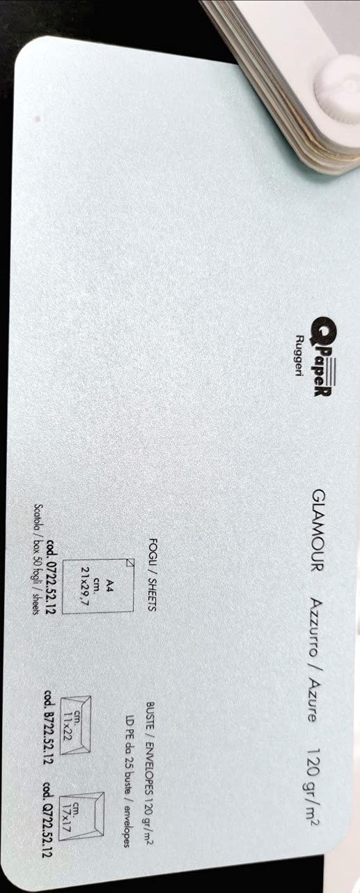 La carta q/paper glamour, come la Carta q/paper glamour A4 gr.120 fg.50 rosa metallizzato 0722.60, presenta un finish metallizzato che la rende ideale per progetti creativi e moderni. La carta acquerello, invece, come la Busta q/paper 11x22 acquerello gr.120 pz.25 avorio b582.69, è specificamente formulata per resistere all'acqua e ai pigmenti, rendendola perfetta per l'acquerello e le tecniche miste.