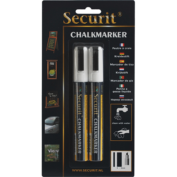 Marcatori gesso liquido securit punta media bianco 2-6mm resistenti 8717624242212