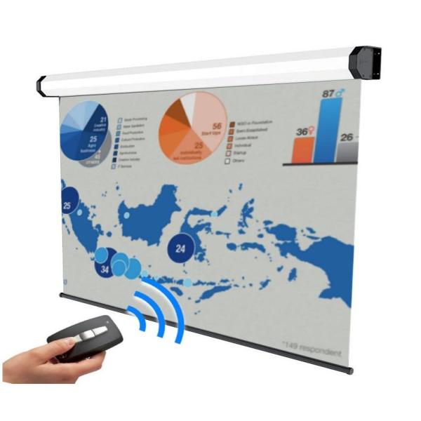 Lo Schermo Proiezione Professionale Motorizzato EL PROFESSIONAL RN 300X300 è adatto per aziende e sale conferenza con cassonetto in alluminio e motori tedeschi, facile da installare.