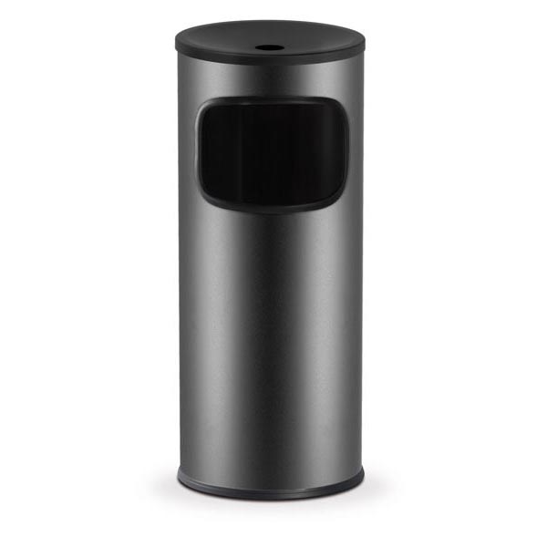 Il gettacarte autoestinguente in acciaio grigio è un complemento arredo funzionale e sicuro, dotato di posacenere rimovibile e bordino antigraffio, ideale per interni ed esterni, completo di sabbia.