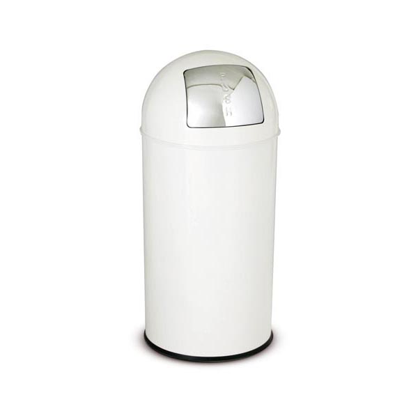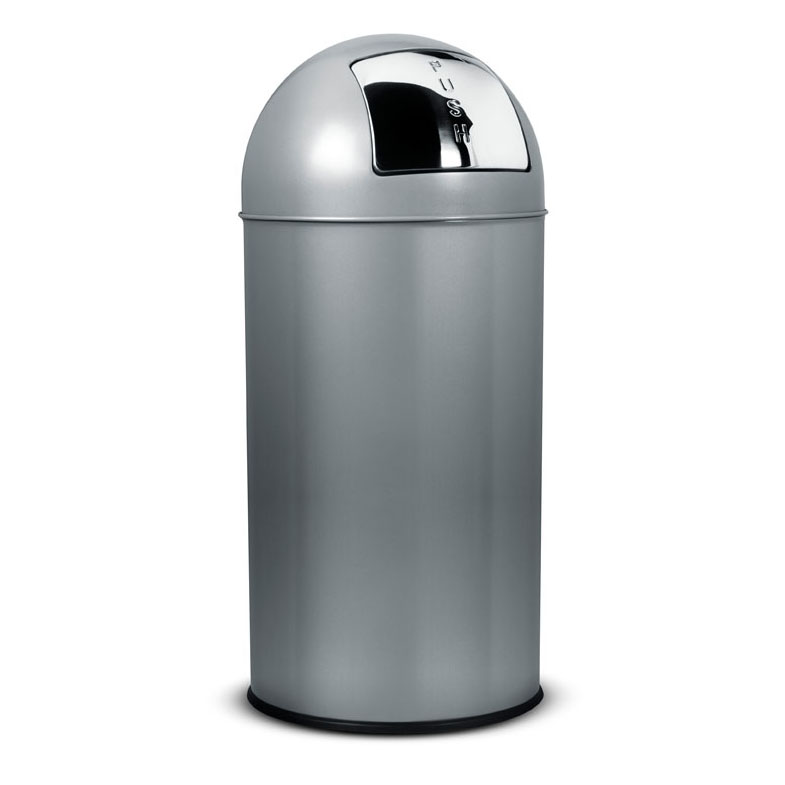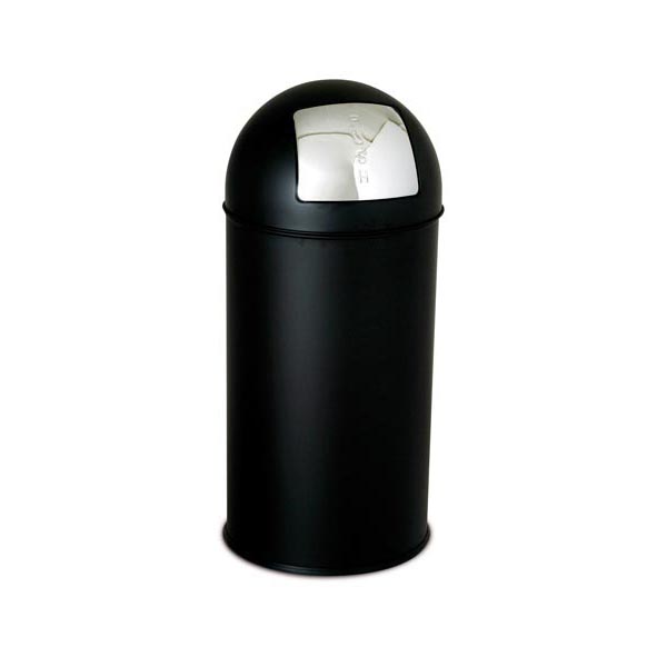 Il cestino Gettacarte Push è un complemento di arredo realizzato in ferro verniciato nero con reggisacco e fondo in metallo, ideale per la raccolta dei rifiuti. Ha una capacità di 75 litri e pesa circa 5 kg, facilitando lo spostamento grazie al suo design pratico e alla presenza di un anello salva pavimento.