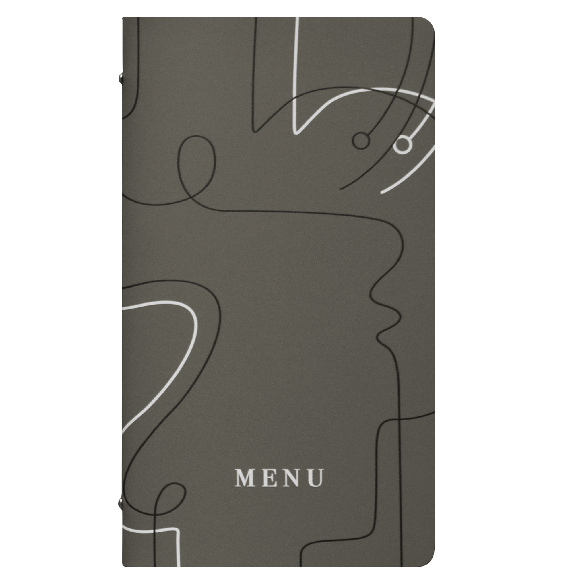 Un omaggio alla forma d”arte più espressiva: la linea. Portamenù di Stilcasa in pelle rigenerata, lavabile con un panno umido, ideale per il catering.