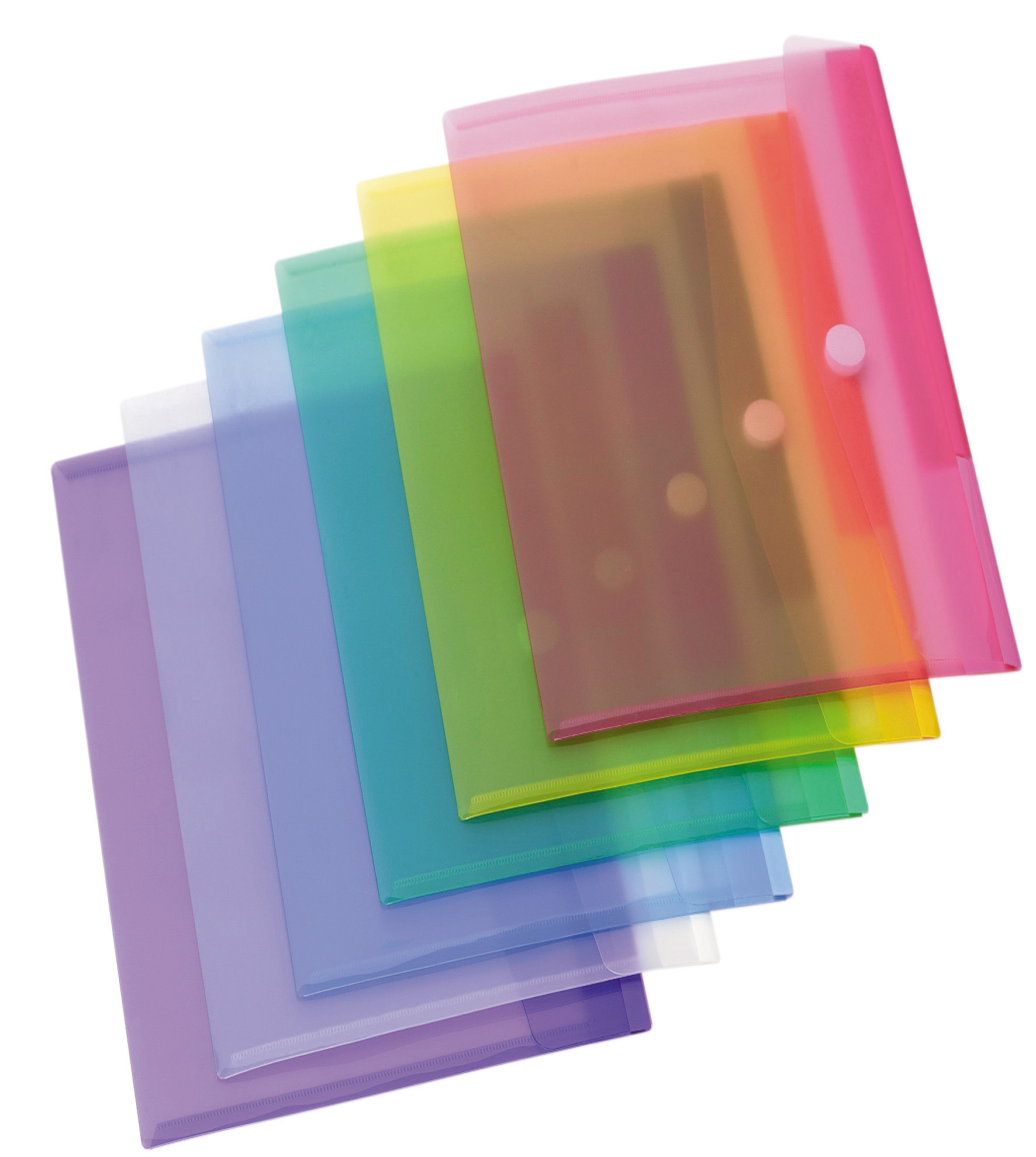 Il prodotto Buste con bottone in velcro appartiene alla categoria delle buste trasparenti, realizzato in polipropilene con chiusura pratico velcro, disponibile in vari colori assortiti e dimensioni standard A4.
