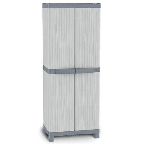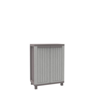 La nostra linea di armadietti per ufficio offre una struttura robusta in PPL e finitura in effetto legno grigio tortora. Gli armadi presentano ante apribili a 180° e ripiani regolabili, ideali per ambienti interni ed esterni.