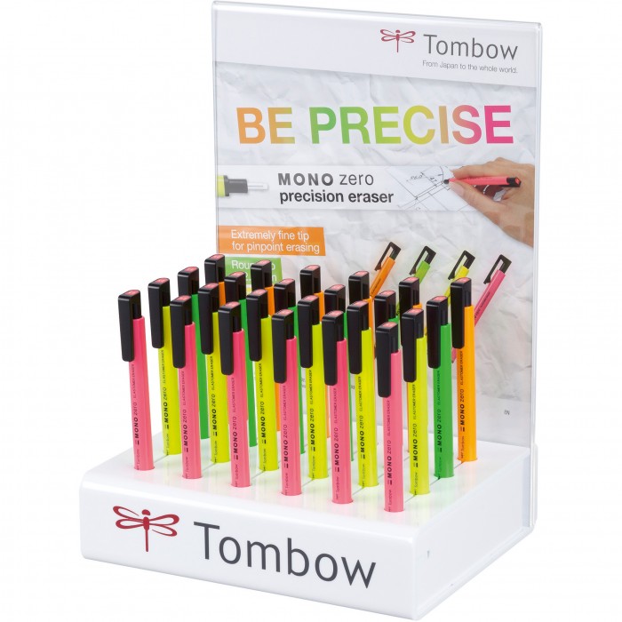 La Gomma di precisione MONO Zero è una gommapiuma compatta per uso professionale, con meccanismo a pulsante e guida in metallo. Dispone di due punte di forma diversa e ricaricabile.