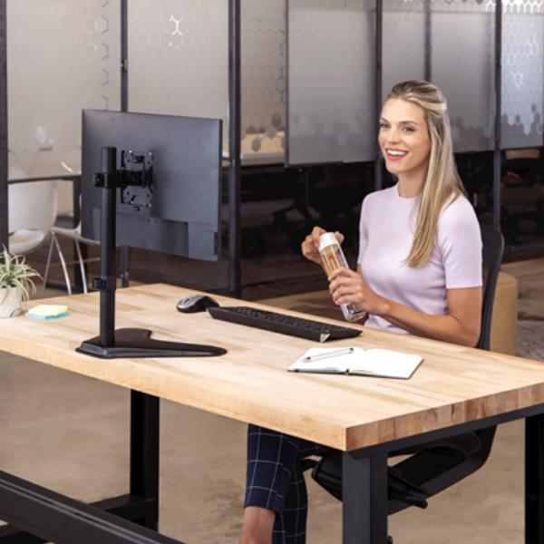 Il supporto monitor a 2 bracci è ideale per ottimizzare lo spazio di lavoro. Robusto, regolabile e salvaspazio, consente di regolare altezza, inclinazione e rotazione per massimo comfort visivo.