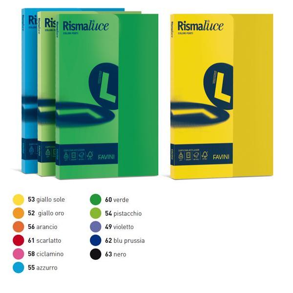 Carta colorata rismaluce a4 200g 5 colori 50 fogli certificazione ecf 8007057615029