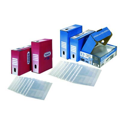 Buste a perforazione universale antiriflesso e goffrate, leggere e robuste, per archiviare un maggior numero di fogli. In PP antiriflesso, disponibili in confezioni da 200 pezzi, formato utile 22×30 cm.