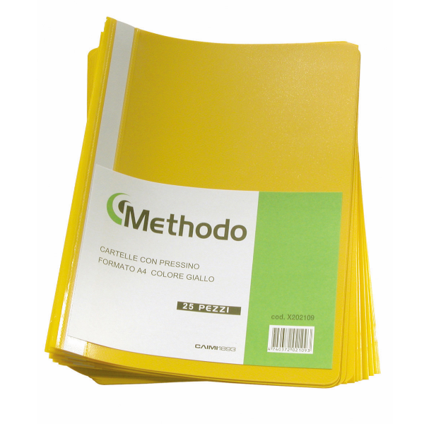 Le cartelle in plastica sono prodotte con buste in polipropilene dotate di chiusura a bottone. La confezione è assortita e proposta in 4 colori diversi. Il formato utile misura 18,5×13,5 cm.