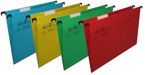 Le cartelle sospese in cartone sono realizzate con alta qualità e presentano aste di sospensione robuste. Sono dotate di bottoni a pressione per il collegamento continuo delle Cartelle sospese.
