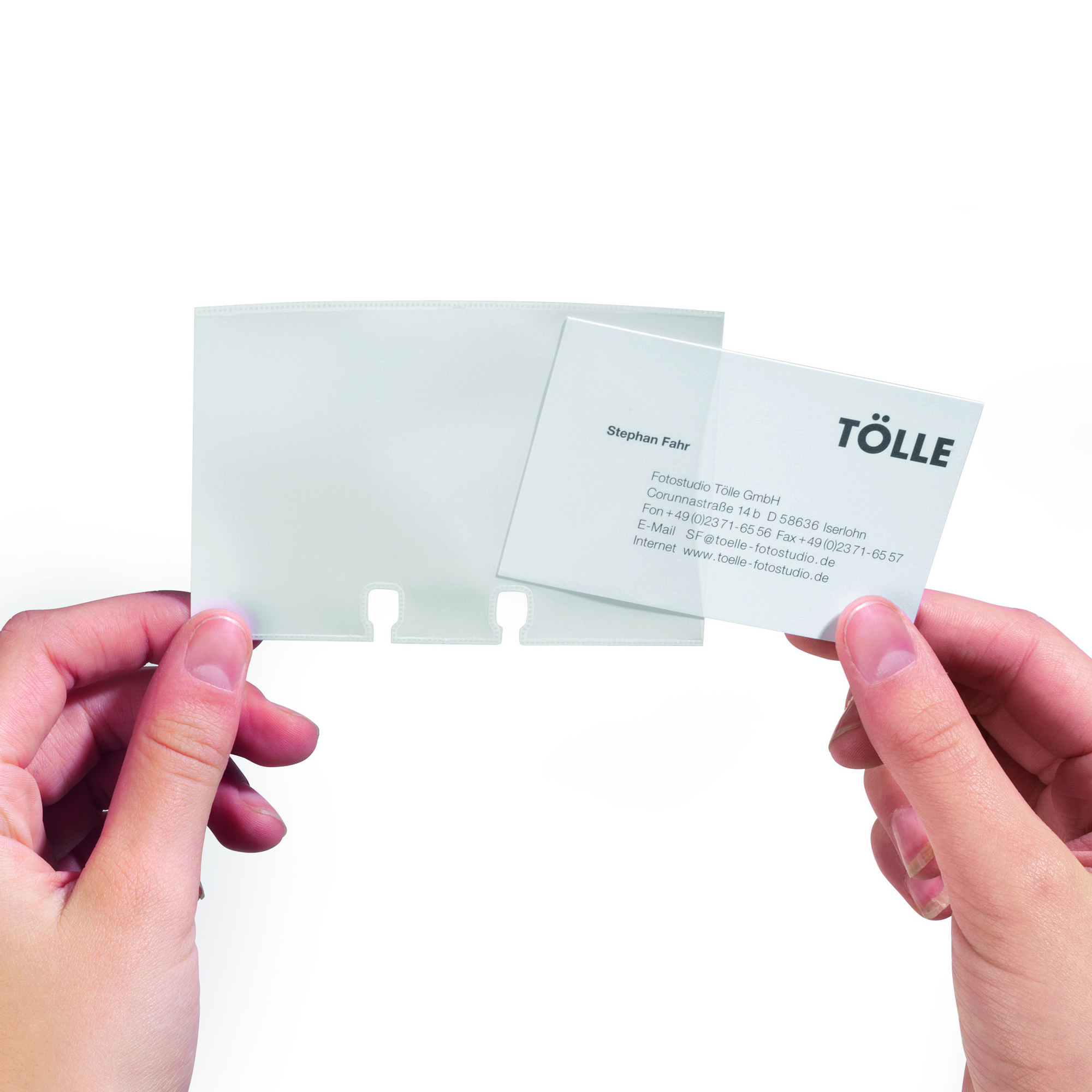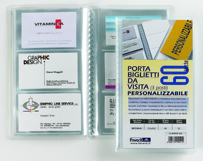 Il Portabiglietti da visita Exacard offre uno spazio per 320 biglietti grazie a 20 buste rimovibili e riposizionabili con intercalari a tasti alfabetici. La chiusura con elastico garantisce una perfetta conservazione e trasporto sicuro. Il formato esterno è di 26,5×25 cm e la finitura antiriflesso protegge i biglietti da visita.