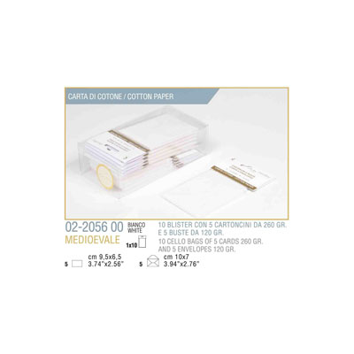 La confezione CF100 contiene 100 buste e 100 biglietti in formato 9, ideali per varie ricorrenze, realizzati con carta da 80/220 grammi, misura 90 x 140 mm.