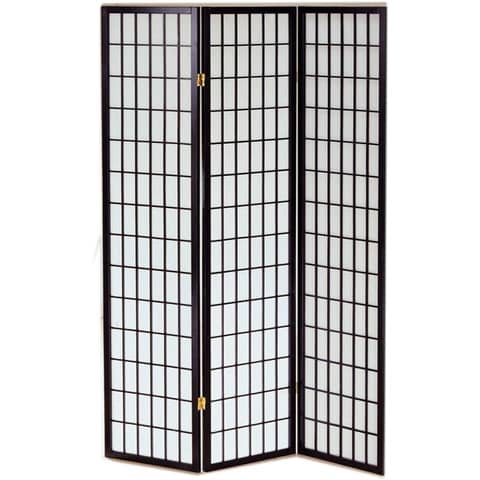Il Paravento 3 ante è ideale per separare gli ambienti in modo creativo, composto da legno e carta di riso, con dimensioni totali di 130,5×178 cm e colore nero.