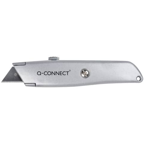 Il cutter Q-Connect è un utensile robusto e versatile con una lama da 18 mm, forma trapezoidale, ideale per tagliare cartoni e materiali spessi, dotato di un pratico blocco di sicurezza per evitare incidenti.