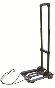 Il Carrello piattaforma carico leggero è in lamiera rinforzata con maniglia tubolare ripiegabile. La piattaforma è bordata in gomma e il piano di carico è antiscivolo, dotato di ruote in gomma piena, portata massima 150 kg.