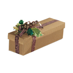 Scatola in cartone onda colore avana, con coperchio orizzontale. Ideale come confezione per regali. Dimensioni: 34 x 18,5 x 9,5 cm. Fornita senza nastri e decori.