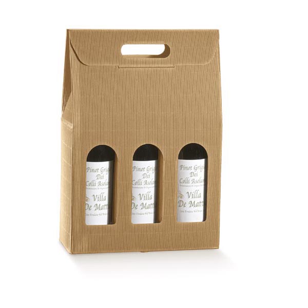 Scatola portabottiglie cartone onda avana 34×18,5×9,5cm con coperchio 8007402078653
