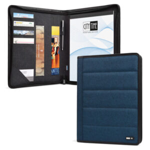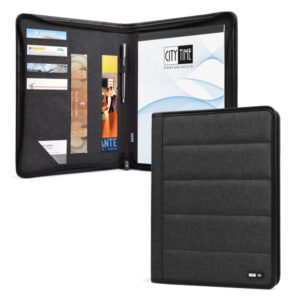 Il Portablocchi City Time in tessuto è un pratico accessorio per portare con sé il proprio blocco. Dotato di chiusura con cerniera e tasca interna, è completo di blocco e misura 26×34 cm, disponibile in colore nero.