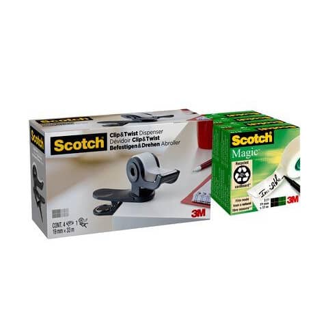 Scotch magic dispenser nero con 12 rotoli nastro adesivo 19mm x 33m 3134375259101