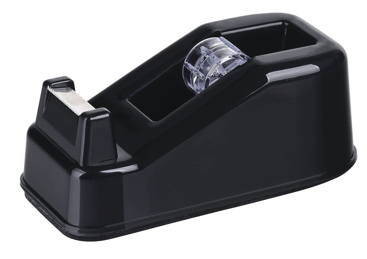 Il dispenser nastro adesivo è uno strumento stabile e progettato per nastri con larghezza massima di 19 mm e lunghezza massima di 33 m, realizzato in plastica con forma ergonomica e lama in acciaio inossidabile, fondo antiscivolo e ricambio nastro semplice, colore nero.
