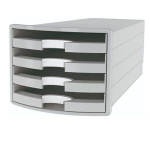 La cassettiera IMPLUS con 4 cassetti grigi, offre ampi spazi per organizzare documenti fino al formato C4. I piedini in gomma assicurano stabilità e le etichette applicabili facilitano l”accesso ai contenuti.