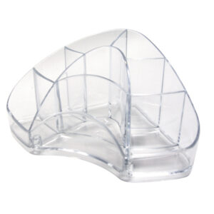 Il Portaoggetti da scrivania cristallo è ideale per contenere penne e matite. Ha uno spessore elevato e ottima stabilità, finitura lucida e dimensioni di 18,5×12,3×9 cm.