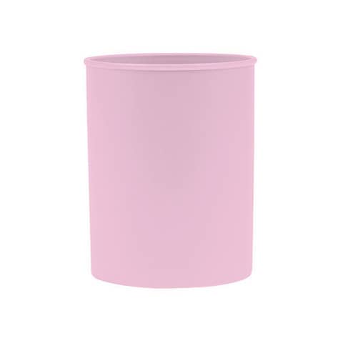 Il Portapenne in polipropilene rotondo è un prodotto 100% riciclabile, progettato per uso scolastico, con diametro di 7,5 cm e altezza di 9,5 cm, disponibile nel colore rosa pastello e certificato secondo la norma EN 71.